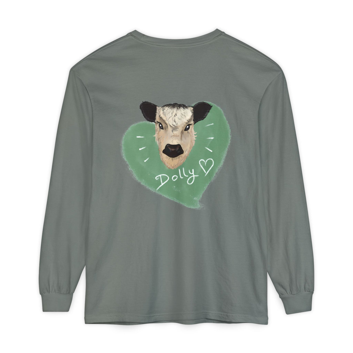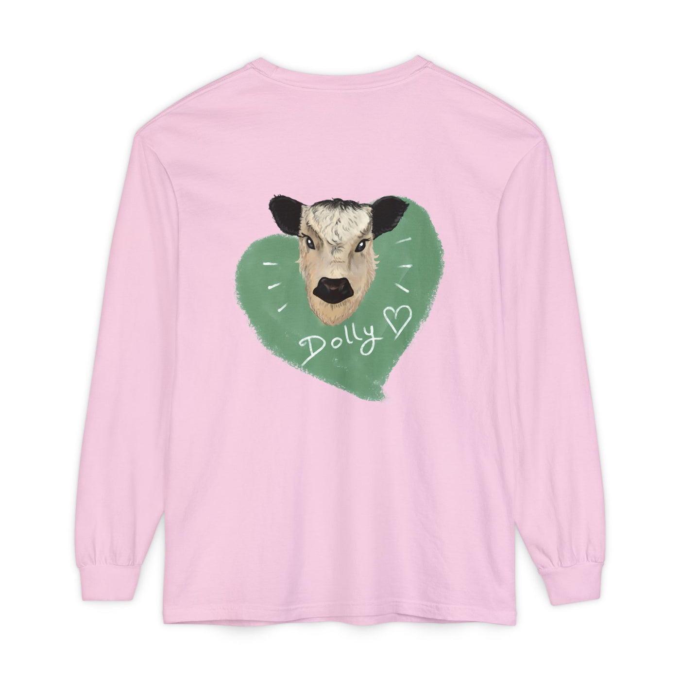 Unisex Garment-Dyed Long Sleeve T-Shirt with Cow Design - Perfect for Animal Lovers