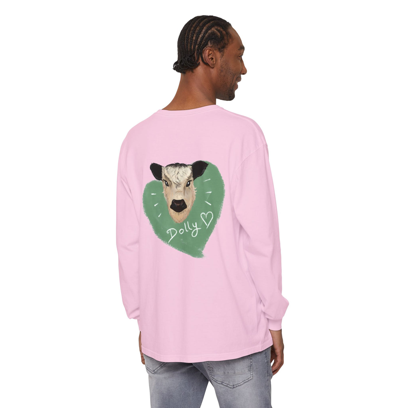 Inform when this item available Unisex Garment-Dyed Long Sleeve T-Shirt with Cow Design - Perfect for Animal Lovers